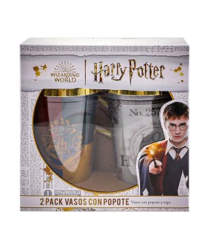 Set De 2 Vasos Con Tapa Y Popote De Harry Potter 470ml