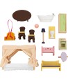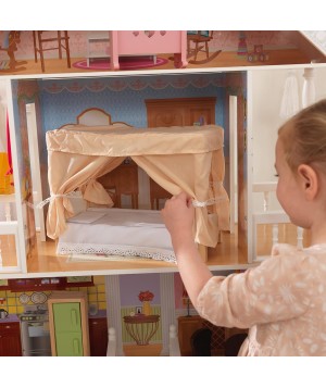 La casa de muñecas Savannah es una de las más elegantes y tradicionales de la línea de KidKraft. Con cuatro niveles y seis habitaciones, esta linda casa ofrece divertidas horas de juego. Es lo suficientemente grande para que puedan jugar varios pequeños a la vez y es ideal para muñecas de hasta 30 cm de altura. Incluye 14 piezas de mobiliario, una amplia fachada abierta, patio exterior con columpio, escalera de plástico moldeado y una preciosa cama con dosel. Fabricada con madera industrializada, madera sólida y tela. Las medidas son: 86 x 34 x 130 cm