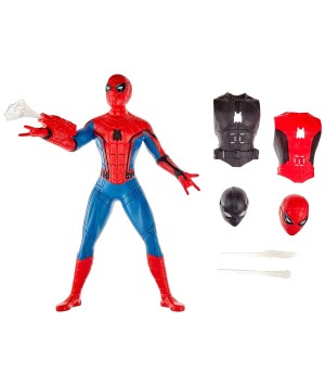 Sonidos y frases inspirados en la película: empujar el botón de insignia en forma de araña en el pecho de la figura activa sonidos y fases inspirados en la película Spider-Man: Far From Home