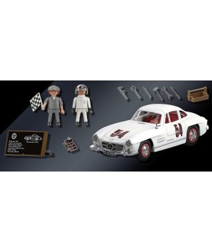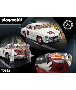 El icono de los coches deportivos de 1950 con las legendarias puertas de ala de gaviota. Ahora también de PLAYMOBIL, equipado con figuras y accesorios de carreras de los años 50