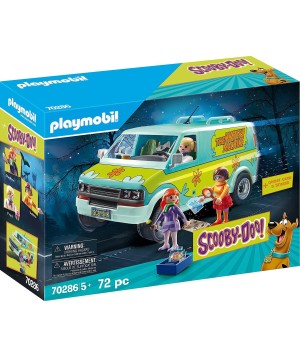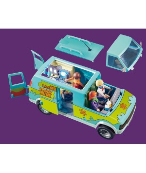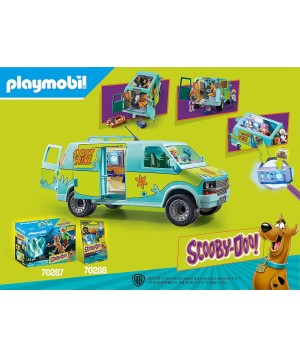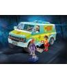 Fred, Daphne y Vilma viajan alrededor del mundo con su vehículo, La Maquina del Misterios, y resuelven divertidos casos; tu también ayuda a resolver estos misterios en La Maquina del Misterios de Playmobil; el techo de la cabina del conductor se puede quitar, la puerta lateral y las compuertas traseras se pueden abrir; en el interior de la Máquina del Misterio hay un monitor iluminado para insertar y leer las Tarjetas de Información de los Fantasmas