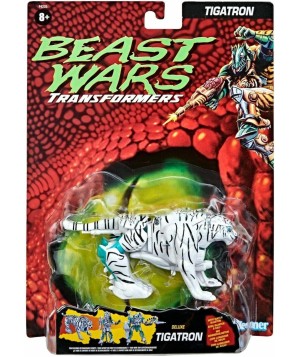 (Re) comienza una colección clásico de Beast Wars con esta figura de Tigatron de Transformers: clásico Beast Wars Inspirado en el clásico juguete de los años 90, Tigatron está diseñado como la versión original, incluyendo estilo de cifras, embalaje y arte de los lanzamientos de Beast Wars de 1996, además de especificaciones técnicas clásicas y accesorios. La figura cuenta con el esquema de color más blanco del lanzamiento de juguete de 1997. Tigatron deambula por la tundra congelada en forma animal, pero se convierte rápidamente en modo robot para la batalla, quitando su cola y convirtiéndolo en un poderoso cañón cuásar para vaporizar Predacons.