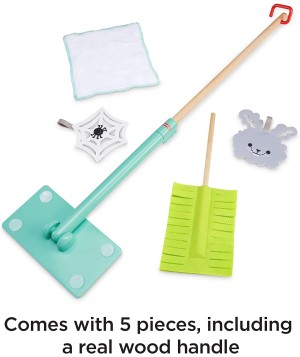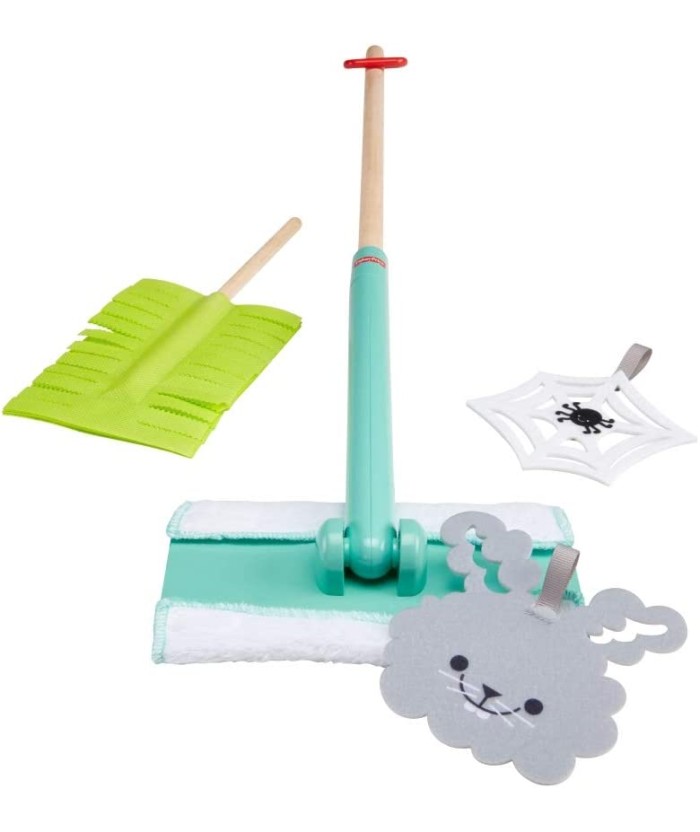 A los niños les encanta desordenar y ahora también pueden ayudar a limpiar ¡gracias al Fisher-Price Set Juguemos a Limpiar! Este set de escoba y plumero tiene el tamaño justo para tu hijo. Además, viene con un “conejito de polvo” y una telaraña de fantasía para que tu pequeño ayudante pueda limpiar. El mango de la escoba es de madera real y la almohadilla de tela se puede lavar a máquina. Una vez que se acaba la diversión, las piezas de juego y del plumero se adhieren fácilmente al mango de la escoba, ¡por lo que estará todo listo para cuando se genere el siguiente desastre!