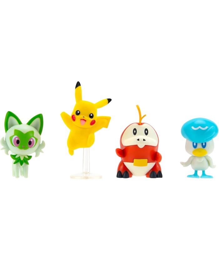 Set De 4 Figuras De Batalla Pokémon Sprigatito Quaxly Fuecoco Pikachu