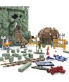 Entre las 6 microfiguras de acción altamente detalladas están: He-Man, Skeletor, Man-At -Arms, Hombre Bestia, The Goddess y una exclusiva Sorceress, también incluye armas únicas y accesorios intercambiables, como el compartimiento para las armas y el orbe mágico de Grayskull