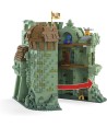 Castillo Grayskull armable que se abre y se cierra, viene con 3 pisos y 6 áreas, la sala del trono, el centro de comandos, el calabozo, 2 puertas secretas, una puerta levadiza que funciona de verdad, un elevador y torres