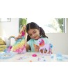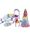 El juego de enfermería cariñosa se combina con la narración de cuentos de hadas en este set de juego de Barbie Dreamtopia que cuenta con una muñeca princesa Barbie, su unicornio mascota ¡y una funcionalidad mágica de cambio de color!