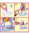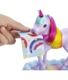 Llena la botella con agua, alimenta al unicornio bebé y colócalo en la bacinica con forma de nube para descubrir una divertida funcionalidad de cambio de color.