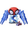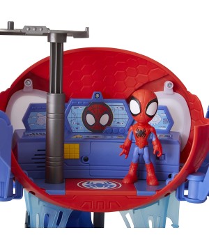 Haz que Spidey en su vehículo baje por las rampas de telaraña para salvar el día en este Aracnocuartel iluminado de 37.5 cm