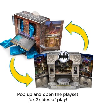 Abre el set de juego para revelar 360 grados de juego en el centro de Ciudad Gótica y en Park Row
