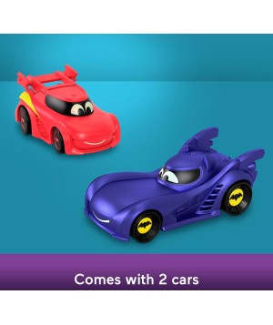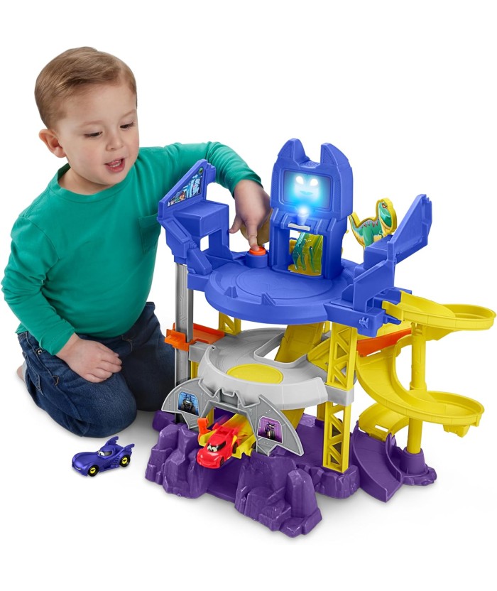 Los niños pueden correr y perseguir autos de juguete con este juego de pista de carreras Batwheels estilo como la Batcueva con luces y sonidos geniales