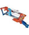 El set de juego motorizado Hot Wheels City cuenta con dos trenes en movimiento que transportan los vagones por la pista en continuo movimiento.