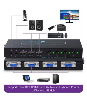 Switch Kvm Usb 4 Puertos Vga Y Audio Fosmon