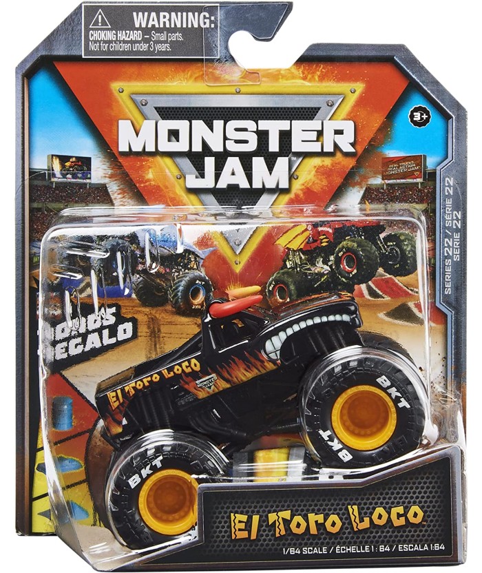 Monster Jam, es el evento en vivo más lleno de acción en cuatro ruedas, en el que pilotos de primer nivel compiten frente a las multitudes de todo el mundo. Presenta entretenimiento espontáneo y una competencia intensa, con los camiones más famosos del mundo. ¡Monster Jam ahora de Spin Master! Este vehículo de 1:64 está increíblemente mejorado, ahora chassis y rines más detallados, amortiguadores y motor mas grandes, incluyen un conductor, y muchos detalles cromados, llantas mas anchas y vehículos mas anchos que dan una imagen mas agresiva, incluyen también una figura que representa a los conductores que reciben las ovaciones del público ¡al igual que en el show!